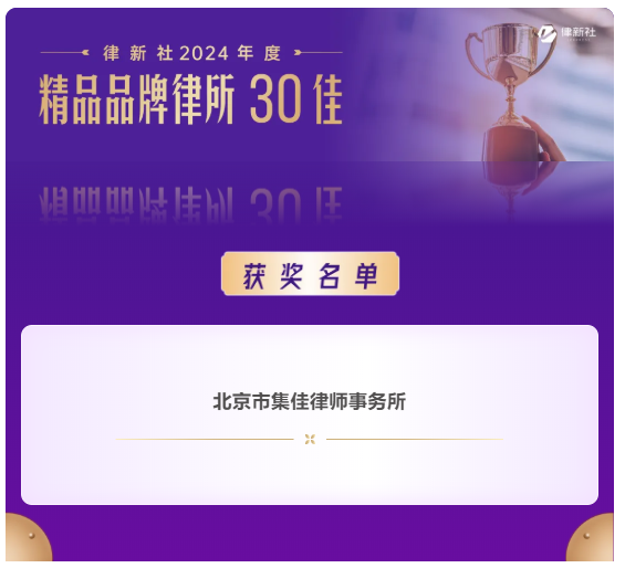 壹号娱乐凭借在知识产权保护领域卓越的专业实力与良好的行业口碑,入选《律所卓越品牌影响力指南(2024)》,荣获“律新社2024年度精品品牌律所30佳”奖项;同时,集佳周丹丹律师代理的“美摄公司诉抖音公司'抖音'软件代码抄袭著作权侵权案”获评“律新社2024年度标杆案例:知识产权-著作权领域”。