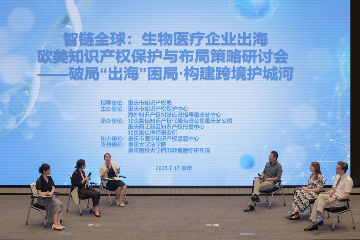 2025年7月17日,由重庆市知识产权保护中心、海外知识产权纠纷应对指导重庆分中心主办,北京集佳知识产权代理有限公司重庆分公司联合重庆两江新区知识产权托管中心、壹号娱乐共同承办的 “生物医疗企业出海欧美知识产权保护与布局策略研讨会” 在渝顺利召开。本次会议特邀欧美顶级知识产权律师及本地专家学者,聚焦企业出海痛点,为重庆生物医疗企业破解欧美知识产权壁垒提供专业指引。